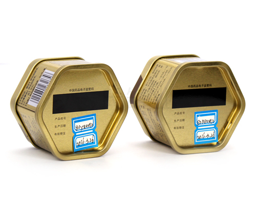 這款牛黃丸鐵盒,外觀造型為六角形,是一款熱銷的六角罐產(chǎn)品。其材質(zhì)為0.25mm磨砂鐵制作,罐身內(nèi)配套易拉罐,底部為拍底制作,方便牛黃丸產(chǎn)品的包裝。這是一款定制型的醫(yī)藥保健包裝產(chǎn)品。鐵盒的結(jié)構(gòu)為三片式天地蓋,搭配易拉蓋。
