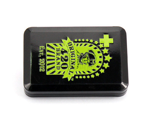 此款翻蓋式香煙雪茄盒鐵盒的表面有雕刻工藝處理,雕刻(激凸)分為平雕與浮雕,浮雕工藝制作出來的鐵盒產(chǎn)品,圖案文字會以3D立體化的視覺方式展現(xiàn)出現(xiàn),對產(chǎn)品品牌宣傳起到了畫龍點睛的作用。我司還可制作出裱紙、貼鉆、鐳射等工藝效果,盡力滿足客戶多方面的制作需求。