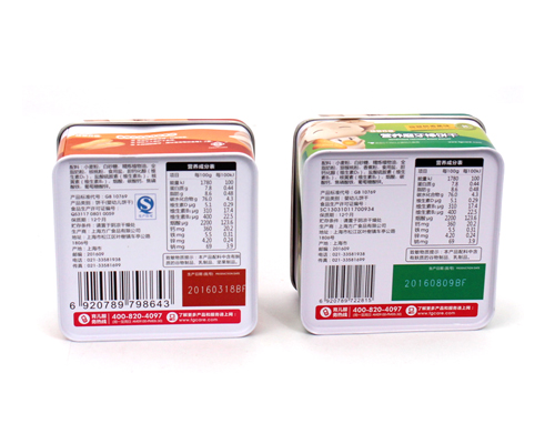 此款嬰兒餅干鐵罐是采用0.23mm鍍錫馬口鐵料沖壓而成,客戶可根據(jù)自身產(chǎn)品的需求選擇0.23-0.28mm馬口鐵/磨砂鐵來(lái)沖壓;此款磨牙棒餅干鐵罐包裝為CMYK印刷+1專,外過(guò)光油,內(nèi)過(guò)食品金油,客戶可根據(jù)自身產(chǎn)品的需求選擇皺紋油、爆炸油、啞油、透明油等,除了起到美化鐵罐包裝外觀的作用,還可以保護(hù)產(chǎn)品在運(yùn)輸途中不受外界環(huán)境的影響。