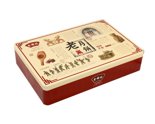此款十二個裝月餅包裝鐵盒,為一款高檔定制型的月餅包裝制品。材質選用實用可靠、防腐耐蝕并具有強烈質感的鍍錫馬口鐵料制成。厚度為0.23mm,可選擇0.25,0.28這兩種厚度的鐵料進行生產。